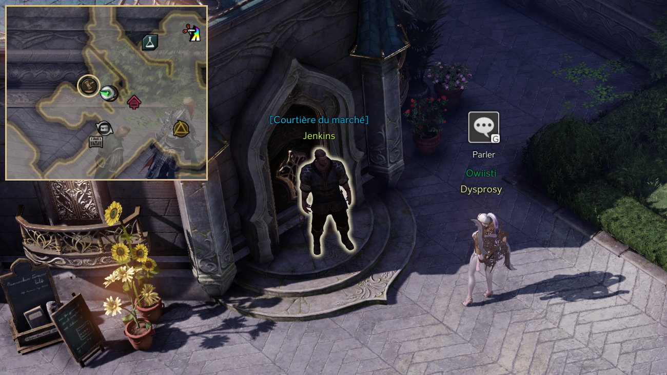 Les PNJ [Courtière du marché] sont situés dans chaque grande ville. Le marché est propre à chaque serveur.