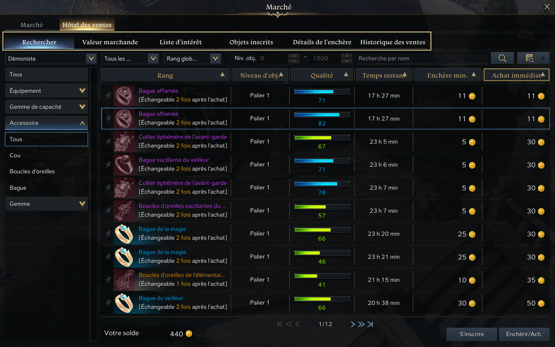 ※ La vente aux enchères de l’hôtel des ventes permet la vente d’équipements, de gemmes de capacités, d’accessoires et de gemmes de tripod.