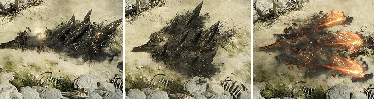| II | Les éléments clés tels que les conditions d’utilisation et les dégâts qui prennent en compte les caractéristiques de la compétence sont modifiés ou ajoutés. Exemple : changement des propriétés d’attaques, application de debuffs, augmentation de la portée d’attaque de 30%, etc. |