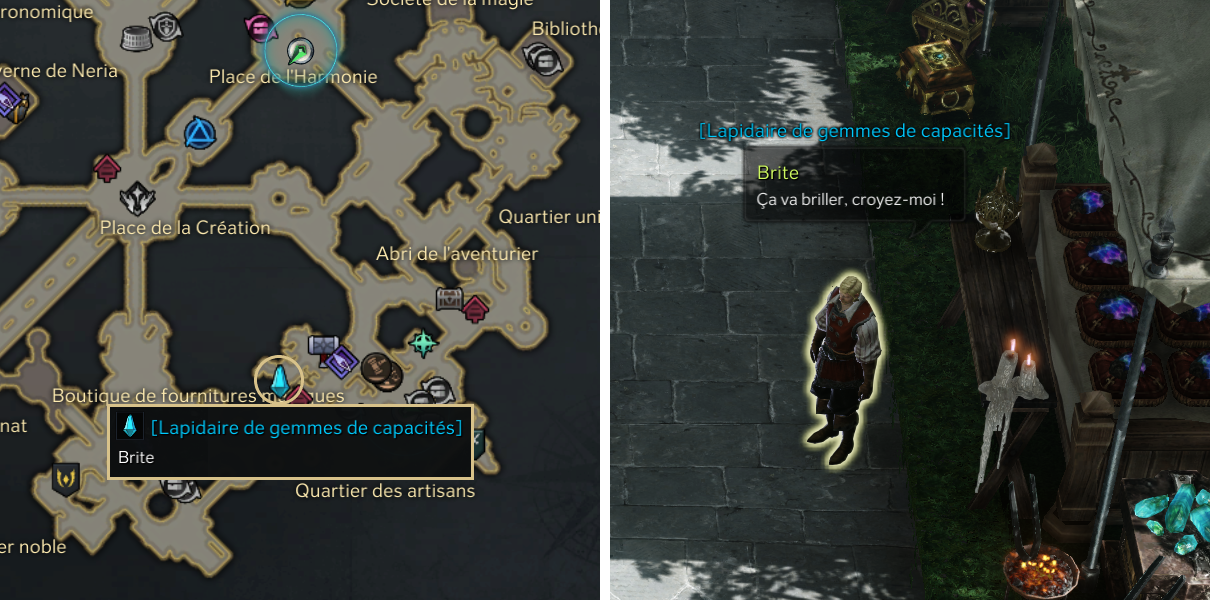 Vous pouvez procéder au polissage des gemmes de capacités auprès du PNJ [Lapidaire de gemmes de capacités] situé dans les grandes villes.
