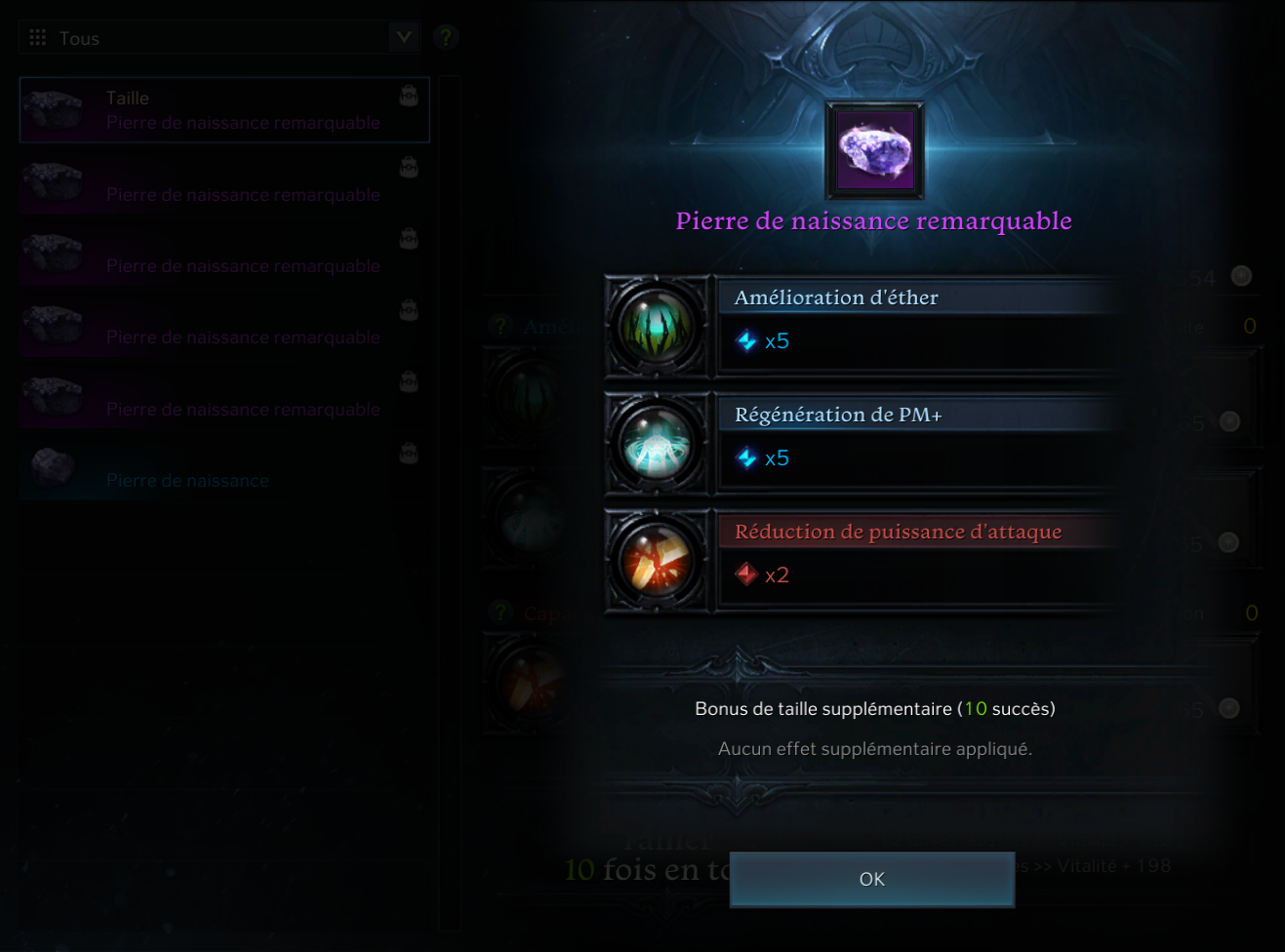 - Une gemme de capacité ne peut être équipée qu’une fois le polissage terminé.